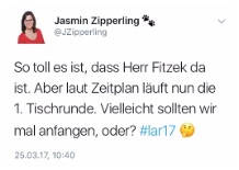 Was hab ich mich auf diese Tischrunde gefreut! Ich wollte schon immer mal wissen, wann etwas witzig ist. Peter Wittkamp erzählt uns etwas zu seinem Werdegang, wie er mit seinen KollegInnen arbeitet und durch wie viele Instanzen ein Witz gehen muss, bevor man ihn raushauen kann.